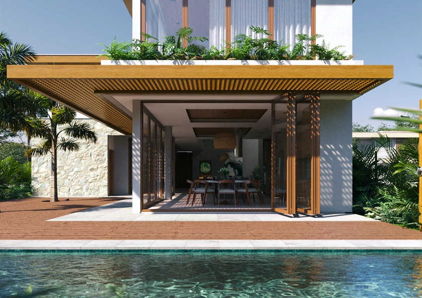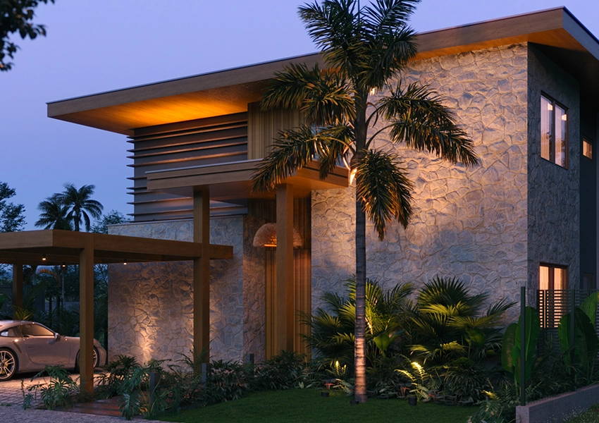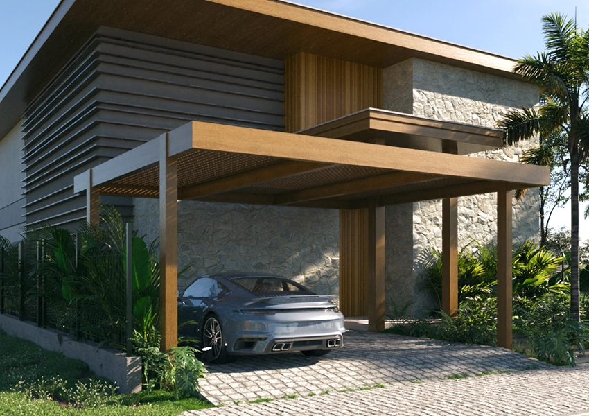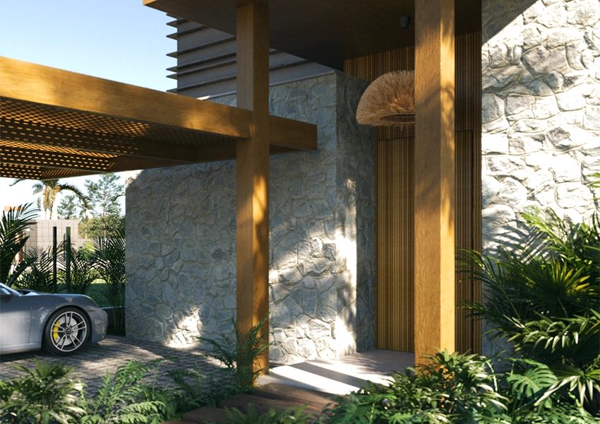 A Casa Tropical nasce como uma incorporação imobiliária pensada para entrar em harmonia com o clima e a paisagem costeira de Arraial d’Ajuda. Antes de qualquer traço de projeto, conduzimos um estudo de mercado e um profundo trabalho de concepção: definimos o estilo de fachada, a volumetria, a circulação e os elementos que maximizaram o potencial do terreno e do produto final. A partir desse direcionamento, desenvolvemos projeto arquitetônico completo e compatibilizamos estrutural, elétrico, hidráulico e paisagismo, entregando um pacote técnico que antecipa e resolve desafios construtivos e de aprovação.